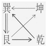 至于“ 月” 这一因素, 它其实是判断乾、坤两卦吉凶性质的重要依据, 因为乾、坤的吉凶与月朝和月夕有关⑤。程浩以《乾坤运转》这一节为例, 来说明一个月之内如何判定乾、坤两卦的吉凶性质, 但其对简文的理解仍值得商榷。本节简文内容为:“ 凡乾, 月夕吉; 坤, 月朝吉。坤晦之日逆乾以当巽; 入月五日舍巽, 乾坤当艮; 旬, 乾、坤乃各返其所。” [2](P109)大意是讲某一卦例的四位之中如果出现了乾、坤两卦, 如何根据时间的推移来判断其吉凶。依简文之意, 在每月的晦日, 坤与乾在一起并开始按照巽的吉凶来判定整个卦例的吉凶, 这样持续五日一直到初五日, 乾、坤便舍弃巽而开始按照艮的吉凶来判定, 一直到初十日。对于这前半部分简文的理解, 程浩与整理组最初的意见一致, 而关键是“ 旬, 乾、坤乃各返其所” 这一句应该如何理解。整理组说:“ ‘ 旬’ , 即至初十日, 乾、坤各返回原位。乾、坤这样以十日为周期的运动, 推想在每个月十一至二十日、二十一至三十日照样进行。” [2](P109)依此意, “ 各返其位” 是指乾、坤在经历了十天的“ 当巽” 、“ 当艮” 之后, 即开始下一个循环的“ 当巽” 、“ 当艮” 。整理组用一个简图对乾、坤两卦的这一运动状态进行描述, 如下所示: