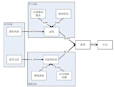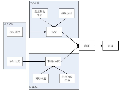 结合中国特殊的网络环境, 以计划行为理论与道德理论作为理论框架构建结构方程, 并且将变量划分为个体、网络以及社会三个层面进行比较分析。