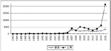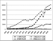 2006年以来, 上海股市成交额开始超越香港, 而到了2014年, 上海股市成交额竟然已接近香港成交额的3倍, 2015年接近7倍(如图4所示)。虽然上海股市仍存在着制度不健全、监管有漏洞等方面的问题, 但这样的一种超越仍然有些令人意外。