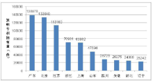 粤港澳大湾区与旧金山湾区相比, 有着众多共性。从地理位置上看, 旧金山湾区与粤港澳大湾区均处于三面环山、一面临海, 适宜于发展外向型经济; 从地域风格上看, 硅谷和深圳也都有敢于变革、善于创新的传统, 最为重要的是, 粤港澳大湾区是中国创新要素和资源高度聚集的重要地区之一, 深圳在研发成果产业化能力和产业配套能力上都名列世界前茅, 并且多元发展新兴产业, 这与旧金山湾区的“ 创新型” 特点不谋而合。粤港澳大湾区十分注重科技创新, 并且在这方面成就尤为突出。截至2015年底, 广东省共有高新技术企业19857家, 高新技术企业规模居全国第一。发明专利拥有量138878件, 连续6年位列全国第一(见图1)。企业发明专利申请和授权量占全省70%以上, 还拥有华为、中兴通讯、腾讯、网易、大疆众多知名的创新型企业[7]。